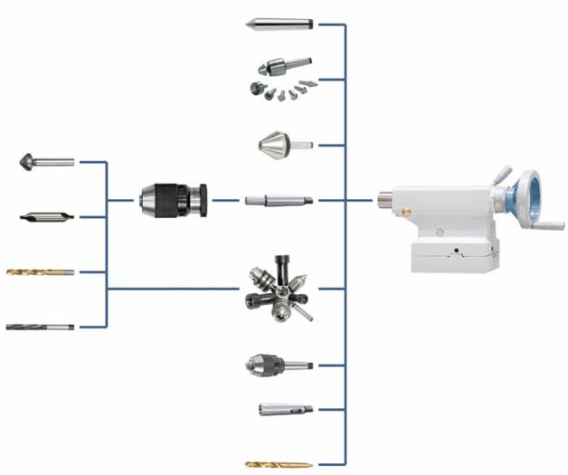 - Одноважільний затискач для задньої бабки, регульований для обточування конуса